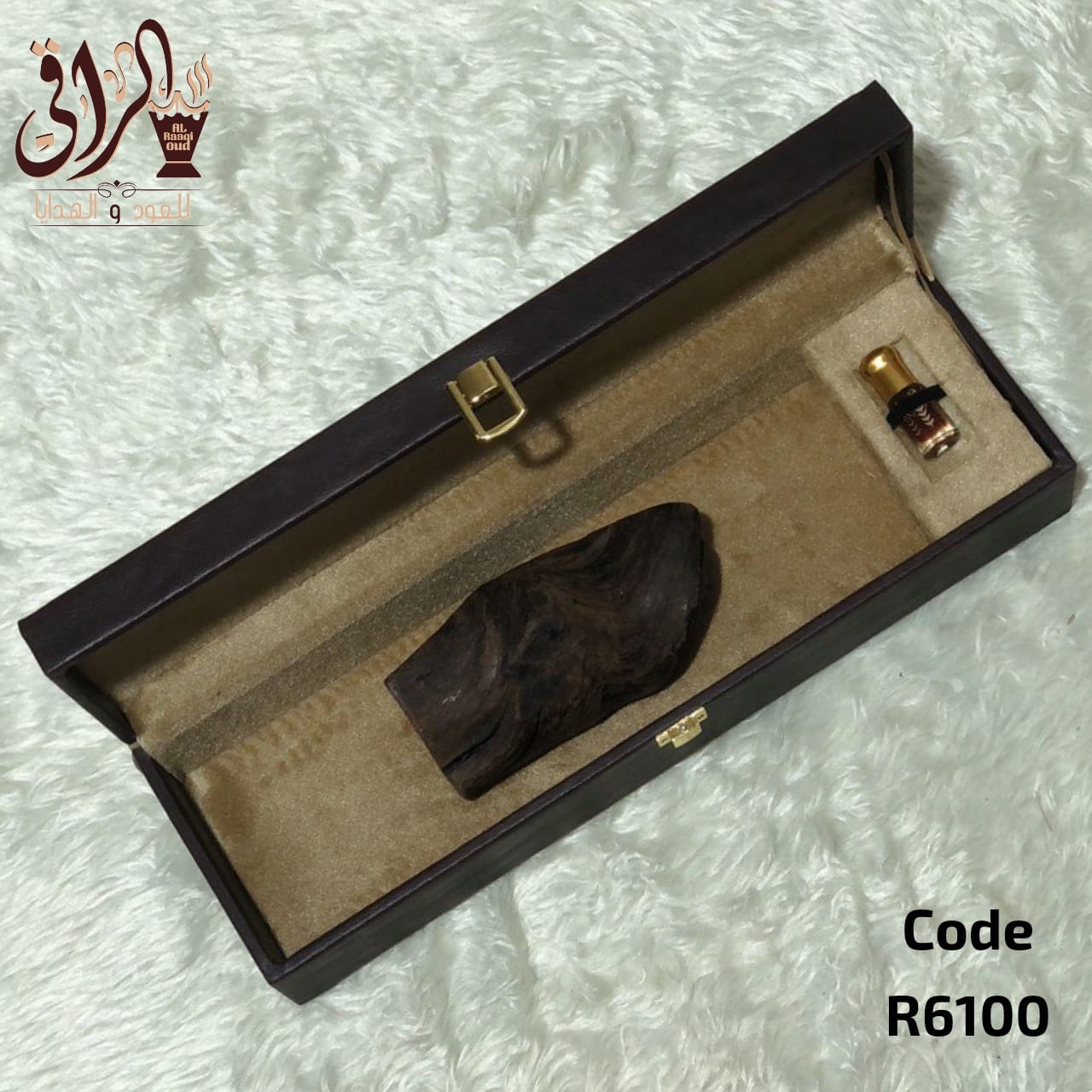 قطعة عود مروكي محسن مع دهن عود ماليزي بيور داخل شنطة جلد فاخرة
