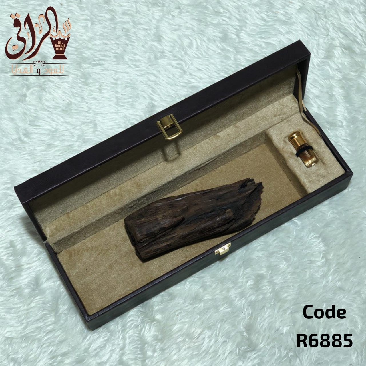 قطعة عود مروكي محسن مع مخلط مركب الشتاء داخل شنطة جلد فاخرة